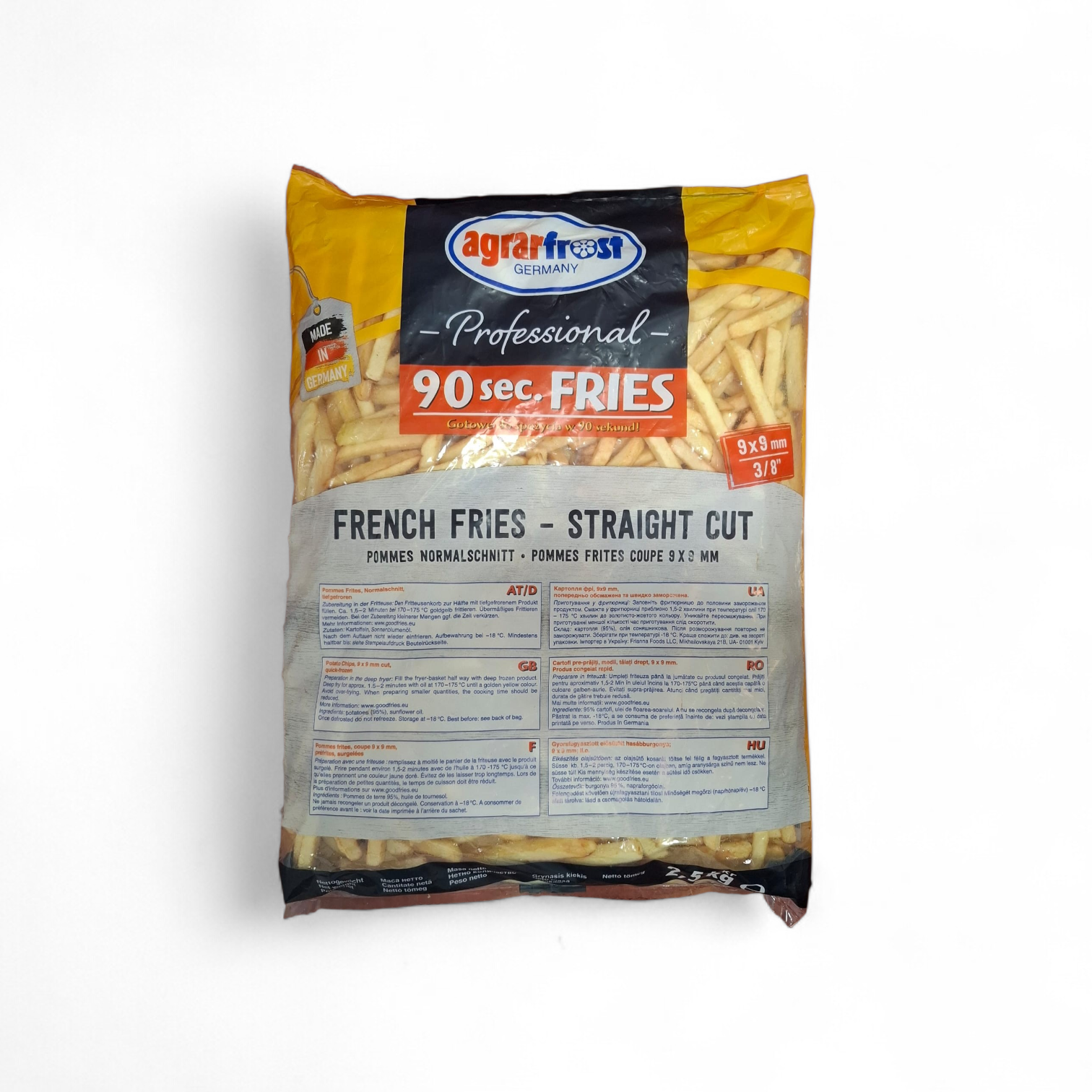 A Fagyasztott Krumpli 9 mm Turbo (4x2500 g) – Agrarfrost kiváló minőségű, gyorsfagyasztott hasábburgonya, amelyet kifejezetten a vendéglátás igényeire fejlesztettek.